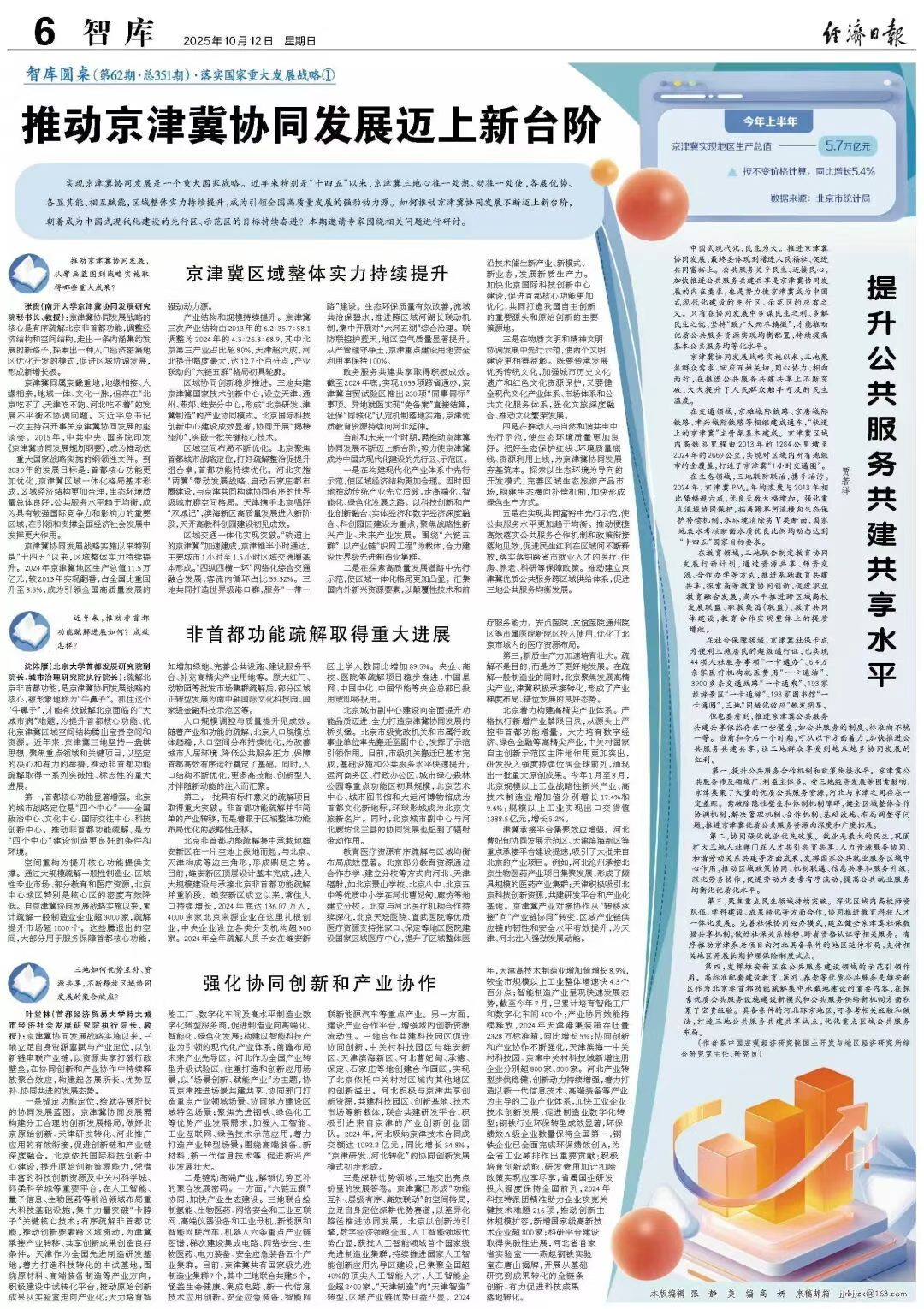 叶堂林(首都经济贸易大学特大城市经济社会发展研究院执行院长、教授):京津冀协同发展战略实施以来,三地立足自身资源禀赋与产业定位,以创新链串联产业链,以资源共享打破行政壁垒,在协同创新和产业协作中持续释放聚合效应,构建起各展所长、优势互补、协同共进的发展态势。