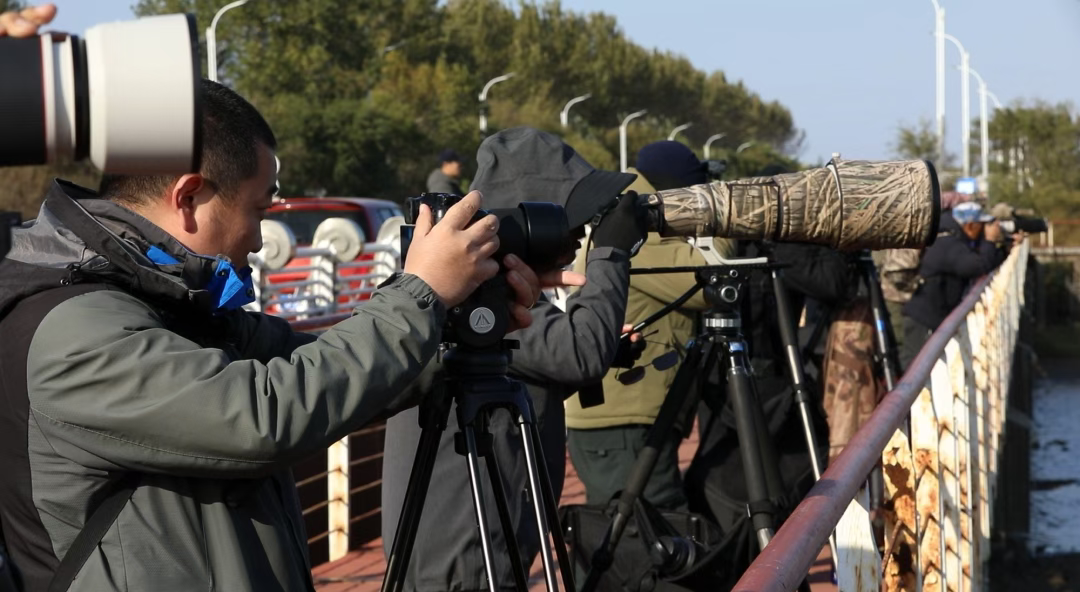 摄影爱好者拍摄候鸟(央广网见习记者 张润 摄)