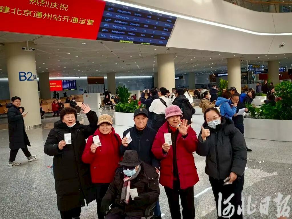 12月30日,北京通州站,旅客合影留念。