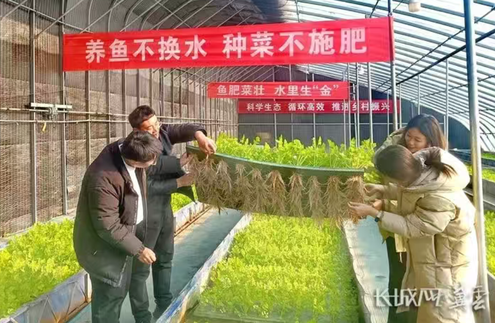 李瑶为参观人员介绍村里的“鱼菜共生”模式。