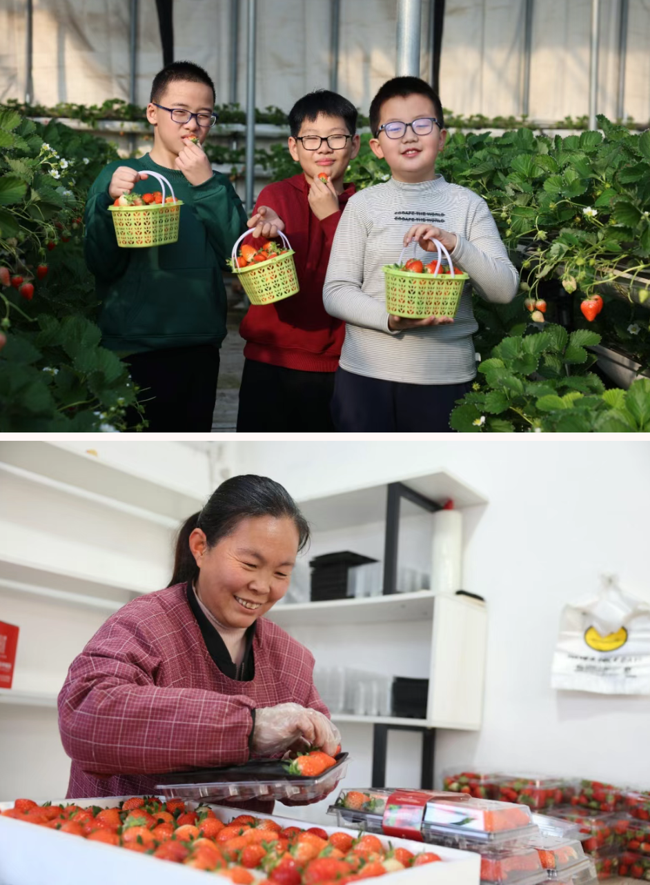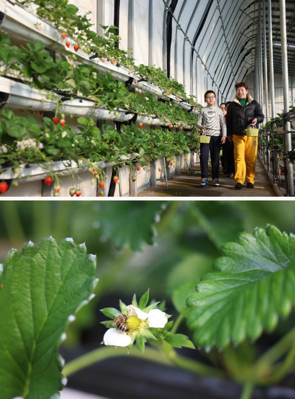 这个冬天,告别城市的喧嚣,奔赴田园之间,游客不仅能亲手采摘最新鲜的草莓,体验田园劳作的乐趣,还能在绿意盎然的大棚间漫步打卡,与红彤彤的草莓合影,定格这份“莓”好时光里的浪漫邂逅。