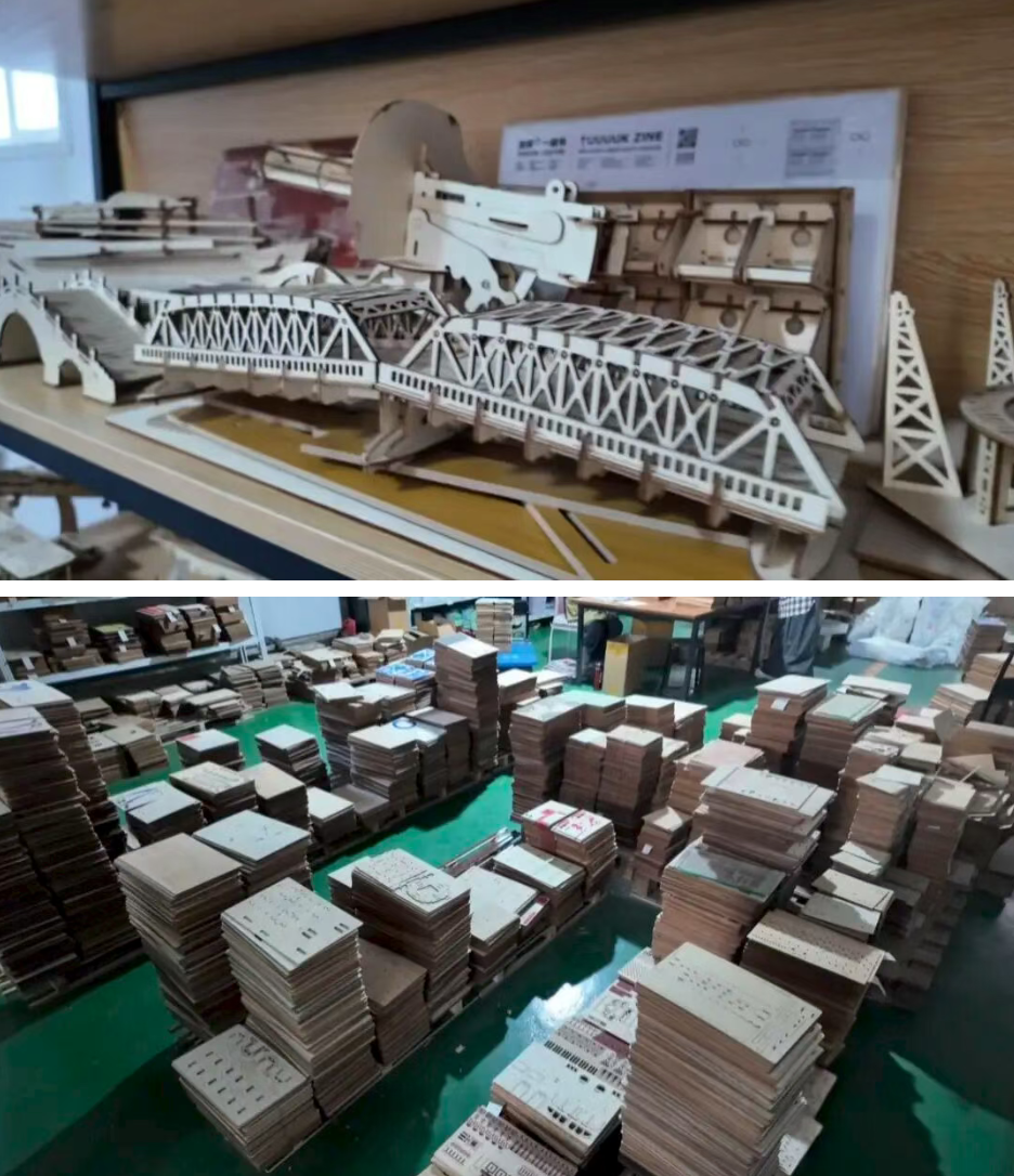 该厂是一家生产木质机械模型的微工厂,现有十余名工人,长期以代加工为主,订单稳定,仍有部分富余产能。他们看准本地文旅产业快速发展的机遇,恰逢县里推出 “一品一播” 扶持政策,便当即在生产车间建起专属直播间。