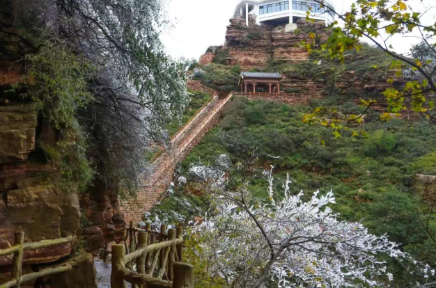微风拂过 细碎的冰晶簌簌飘落 宛如冬日里洒落的点点星光 浪漫动人 凑近观赏 雾凇的姿态千姿百态,意趣盎然 有的如缀在枝桠间的碎钻 在阳光照射下折射出细碎光芒 有的似裹着薄冰的玉簪 将草木的轮廓勾勒得愈发灵动 还有的轻覆在尚未褪尽的秋黄 深红叶片上 让秋日暖意与冬日清冽在枝头交织相融 别有一番韵味 漫步山间 脚下是落叶轻响 抬头是满目银装 空气中弥漫着冰晶的清新气息 仿佛置身于一幅静谧雅致的冬日画卷之中 雾凇 又称树挂、傲霜花、银花、雪柳等 是大自然赠予武安的限定礼物 它不似白雪那般厚重 却比白雪更显精致 每一片冰晶都藏着低温与水汽的默契 每一处银装都诉说着时节交替的私语 无需刻意寻觅 只需踏入西部山区 这份美好便可能在蜿蜒山径旁 层叠林木间与你不期而遇 眼下的武安 正以雾凇为笺 写着初冬的邀约 趁着多云间晴的好天气 不妨约上三五好友 裹上温暖衣物 走进古武当山 赴这场雾凇盛宴 毕竟 这般藏于时节缝隙中的自然景致转瞬即逝 如此不期而遇的美好 一年里也难得邂逅几回