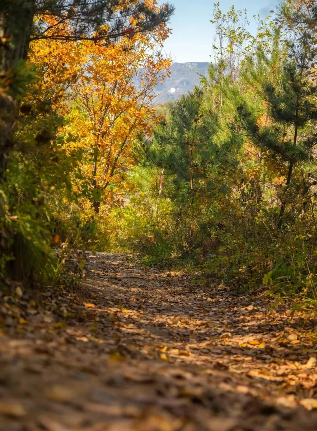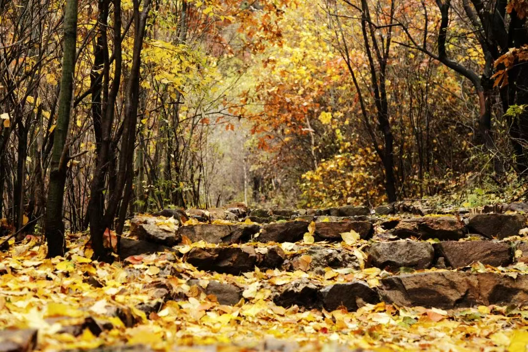 阜平秋日色彩从山谷向山顶次第晕染。天生桥瀑布群景区依旧是赏秋核心,原本翠绿的山林被秋风“调色”,黄的桦树、红的枫树与常青的松柏交错,形成“一山看四季,十里不同色”的绝美景观。秋风拂过,红叶、黄叶簌簌飘落,铺满山间步道,踩上去松软作响,伴着山间清泉潺潺流淌的声音,奏响秋日独有的乐章。