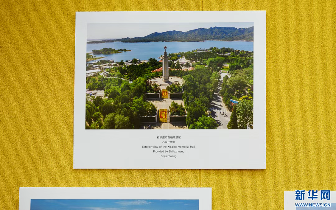 现场展出的石家庄市西柏坡景区图片。新华网 发