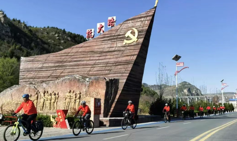 骑行爱好者沿抗大路骑行,感受春日太行的生机与魅力。韩文洲摄