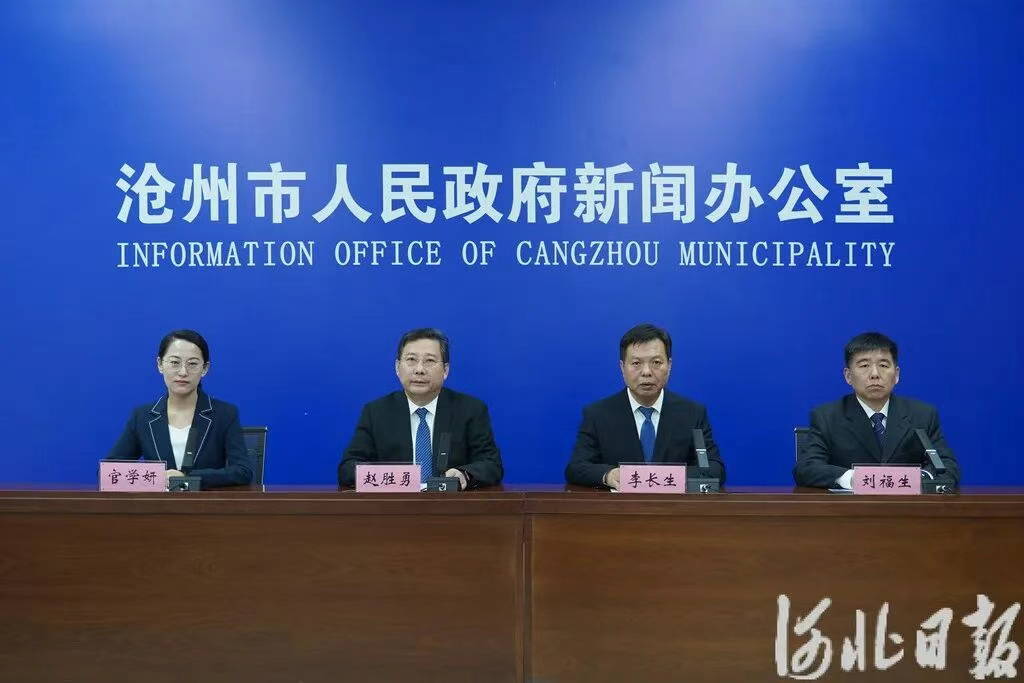 沧州市政府新闻办“高质量完成‘十四五’规划 加快建设现代化沿海经济强市”新闻发布会现场。河北日报记者 戴绍志摄