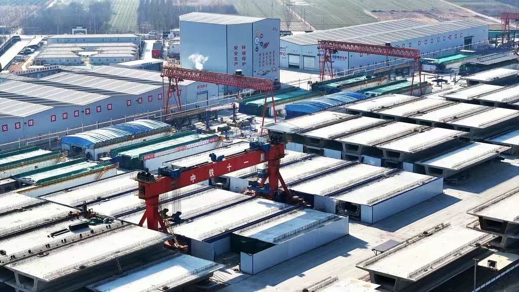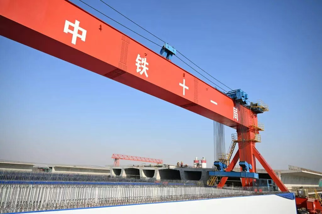 12月5日,承担石雄铁路站前2标施工范围内757榀双线箱梁预制任务的中铁十一局安国制梁场工人在进行提梁作业。