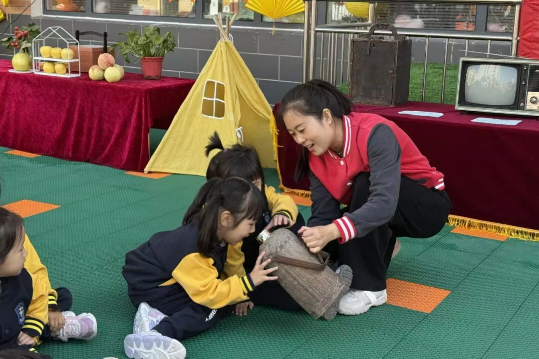 “我觉得这个搪瓷缸好漂亮,上面的花纹很可爱!”“我拨算盘的时候,感觉像在玩一个有趣的玩具!”活动还精心设计了互动小游戏,引导孩子们用简单的语言,分享自己对老物件的感受与发现。