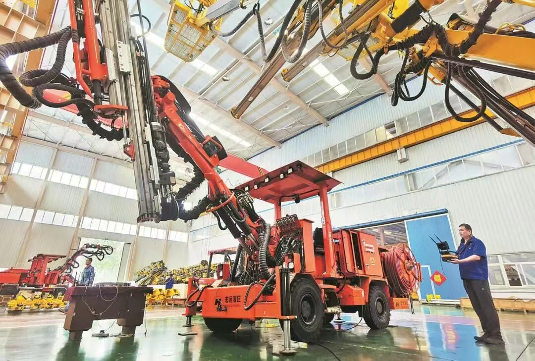 日前,河北宏远液压机械有限公司装配车间内,技术人员对智能掘进钻车进行出厂前的调试。河北日报记者陈正摄线上贯通——激活绿色产业新动能