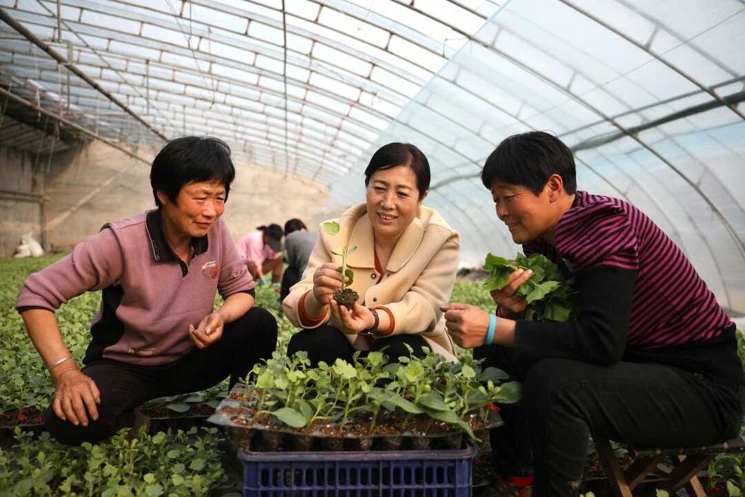 全国人大代表李素环(右二)对瓜农进行授课。受访者供图