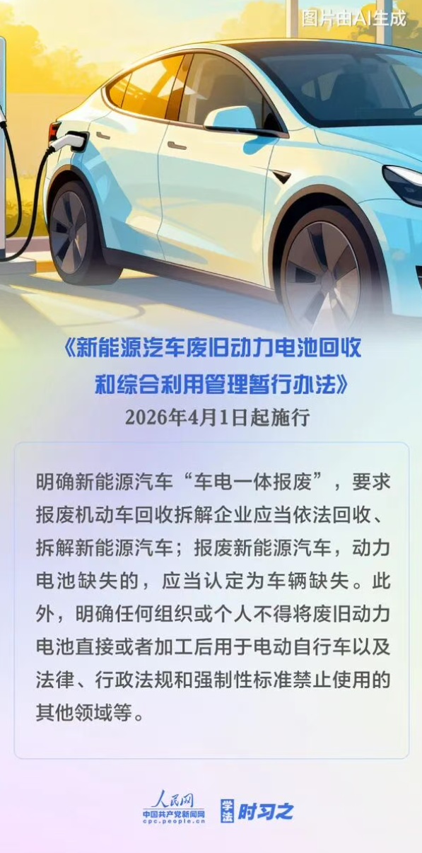明确新能源汽车“车电一体报废”;