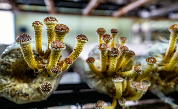 3月10日,在位于天生桥镇的食用菌核心园区海参菇生产车间内,记者看到,菌棒上,一朵朵形态独特的菌菇整齐排列,菌体饱满,外形酷似海参。河北国煦菌种研发中心实验室主任刘青旺介绍:“这是我们公司的新专利产品——海参菇。目前生产车间内海参菇长势非常理想。”