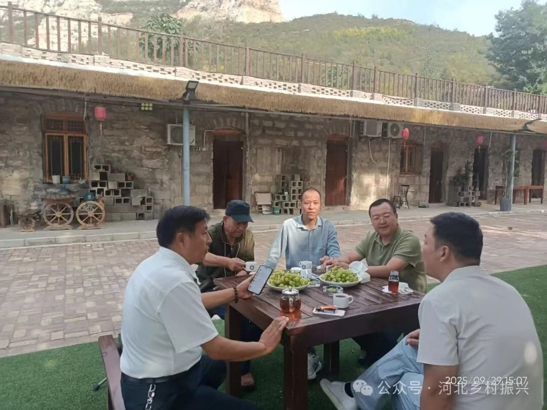 河北省村镇经济发展促进会会长于秀蕊、河北省汽车用品行业协会会长兼白鹿农庄负责人邢风庭、河北省质量信息协会副会长王建东、玉平旅游策划服务河北有限公司总经理孙玉平、河北惠信大数据科技服务有限公司副总经理王彪、湖南潭州新能源有限公司负责人郝志强等一行人齐聚此地,共同为农庄的发展与乡村振兴的结合出谋划策。