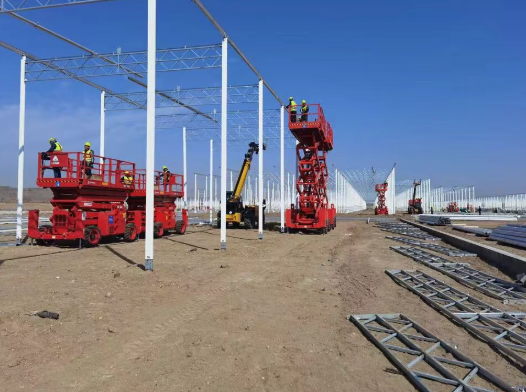 鸡泽县工人正在搭建温室大棚。白利冲摄