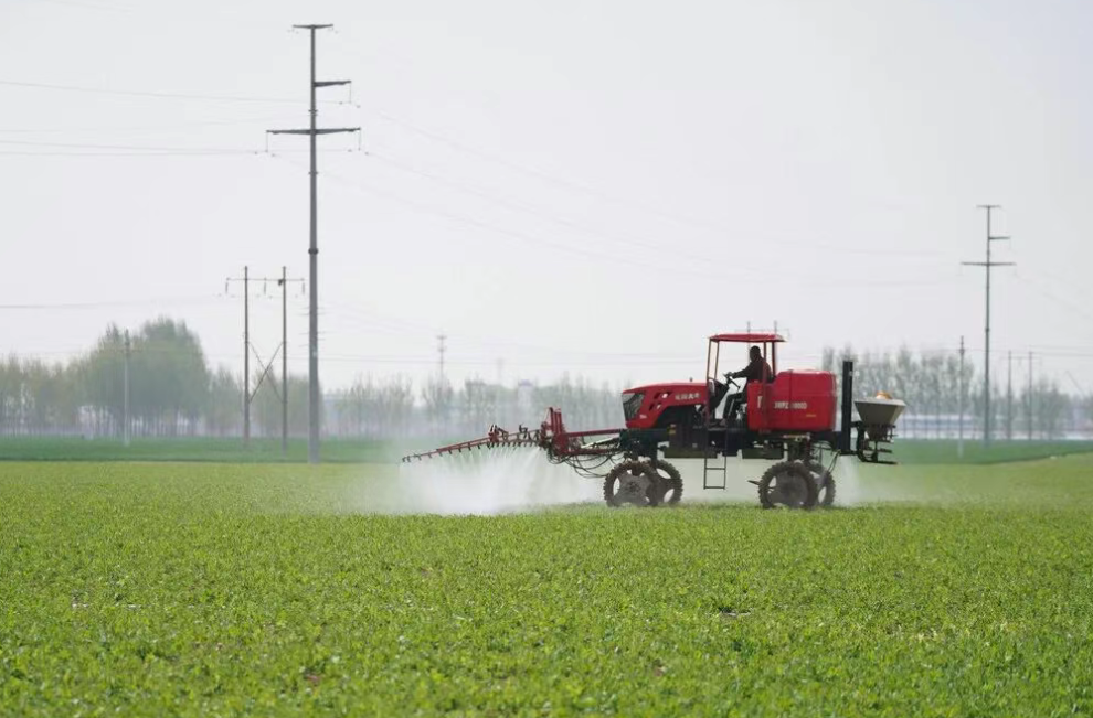 4月21日,唐山吊桥食品有限公司豌豆种植基地,工人正在给豌豆施叶面肥。河北日报记者 赵墨摄