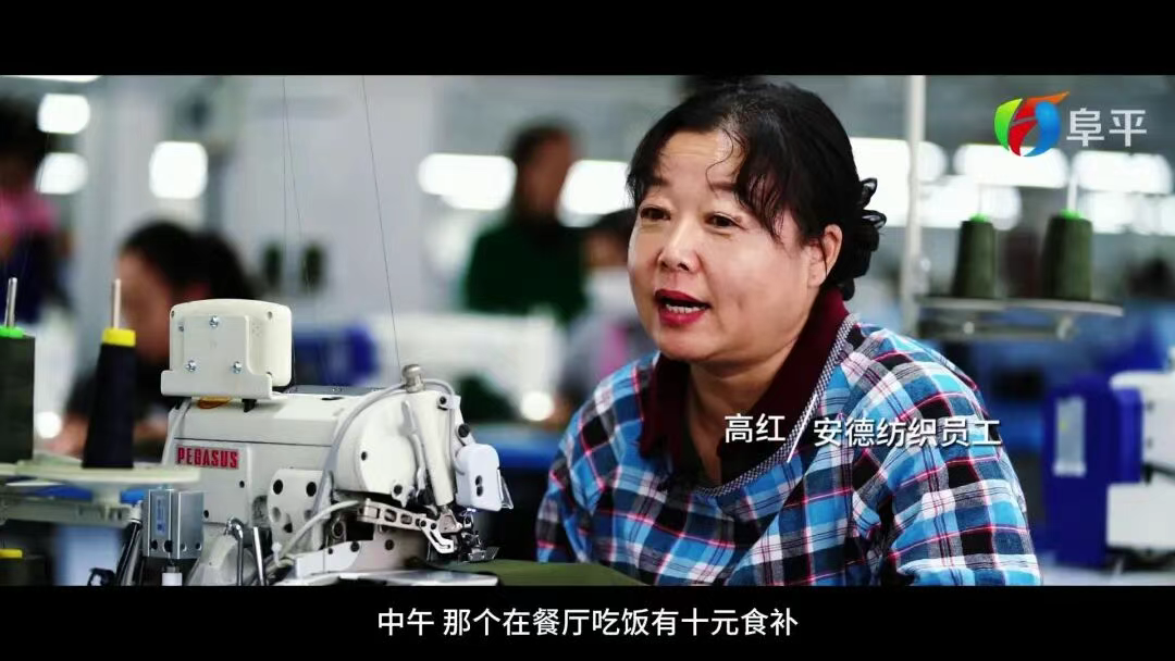 安德纺织员工 高红说:“中午在餐厅吃饭还有十元饭补,在这上班确实挺好,挺受益的。”