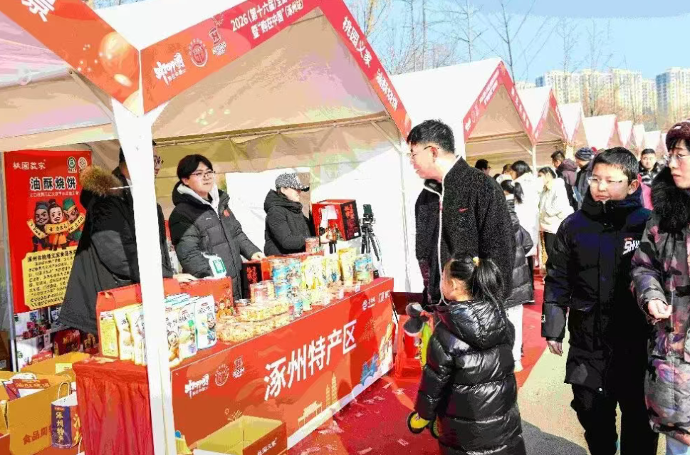 特色美食区香气氤氲,南北风味交融,本地小吃与各地美味同台亮相;涿州特产区专属呈现贡米、张飞家酒、豆腐丝、香肠等本土佳味;农副产品区展列全国多地绿色有机食材、预制菜等;生活用品区补齐日用百货,实现“不出涿州,购遍南北、选尽好物”……本地农业合作社商户李福建一边打包商品一边介绍,作为深耕本地的农业从业者,他带来了自家合作社的手工酱菜及原生态农产品,借助年货节不仅拓宽了销路,更让涿州本土农特产品对接上了京冀大市场。一圈转下来,市民苗腾手里已经拎了好几袋:“这才像过年。烧饼、焖子、豆腐丝,都是老味道。”她说,这些年货买回去,不只是吃,更是把记忆里的年味找回来了。常年往返京涿的通勤族李旭一手拎酒一手提米:“给同事带的酒,给老家带的米,还有自家备的干货,年货、年味儿齐活了!”这浓浓的人情味儿与热闹劲儿,不仅在各个摊位间流淌,更在舞台中央汇聚成有声有色的高潮。一阵铿锵震天的锣鼓猛地撞进喧闹的人海,非遗长安城文吵圣会带来的《锣鼓喧天迎春来》,像一把烧红的铁钳,瞬间将全场的气氛锻打到最热。锣、鼓、铙、钹上下翻飞,演奏者们红光满面,每一个鼓点都砸在人们心跳的节拍上。醒狮随着鼓点灵动腾挪,眨着眼睛,跃上跃下,所到之处,大人孩子笑成一片。涿州市商务局局长马浩表示,举办本次年货购物节,是涿州落实扩内需、促消费政策的重要举措,也是激活春节消费市场、惠及民生的具体实践。“我们始终秉持‘政府引导、企业参与、市场运作’原则,抓实活动筹备、招商组织及服务保障工作,严格把控商品质量,规范市场经营秩序,全力打造安全、放心、优质的消费环境。”赶一场大集,寻一份年味。年味从德信公园一点点蔓延着,飘进涿州的大街小巷,飘进千家万户正在准备的年夜饭里,飘进每个人对团圆、对新岁的期盼里。这份热气腾腾的年味,正是涿州人民牢记习近平总书记殷切嘱托的生动写照。从灾后家园的重建修缮到温暖过冬的坚实保障,从农特产品的产销两旺到非遗文化的活态传承,涿州人民把总书记的深切关怀转化为奋进力量。牢记嘱托、感恩奋进,在协同发展中彰显“涿州担当”,在产业升级中锻造“涿州实力”,在城乡建设中绽放“涿州魅力”,在惠民安民中传递“涿州温度”,在固本培元中展现“涿州作风”,涿州人用勤劳与智慧浇筑美好生活的幸福答卷。