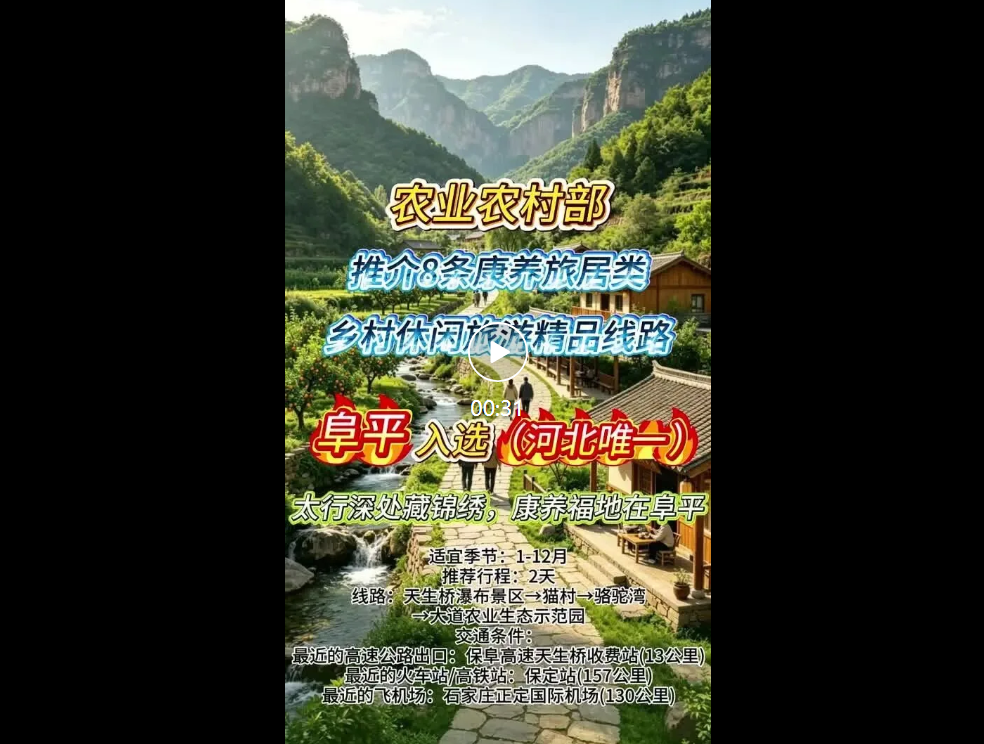 此次入选,是对阜平乡村康养发展的权威认可,更彰显太行山区乡村休闲旅游的独特魅力,为全省农旅融合、乡村振兴提供标杆示范 。这份国家级认可,成果亮眼,详情请点击下文了解↓